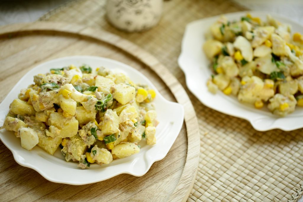 Met het mooie weer en felle zon is zo’n aardappel- tonijnsalade perfect. Wat ik zo heerlijk vind, is dat ze veelzijdig zijn. Daarom maak ik ze elke keer een beetje anders zodat geen enkele salade hetzelfde smaakt!