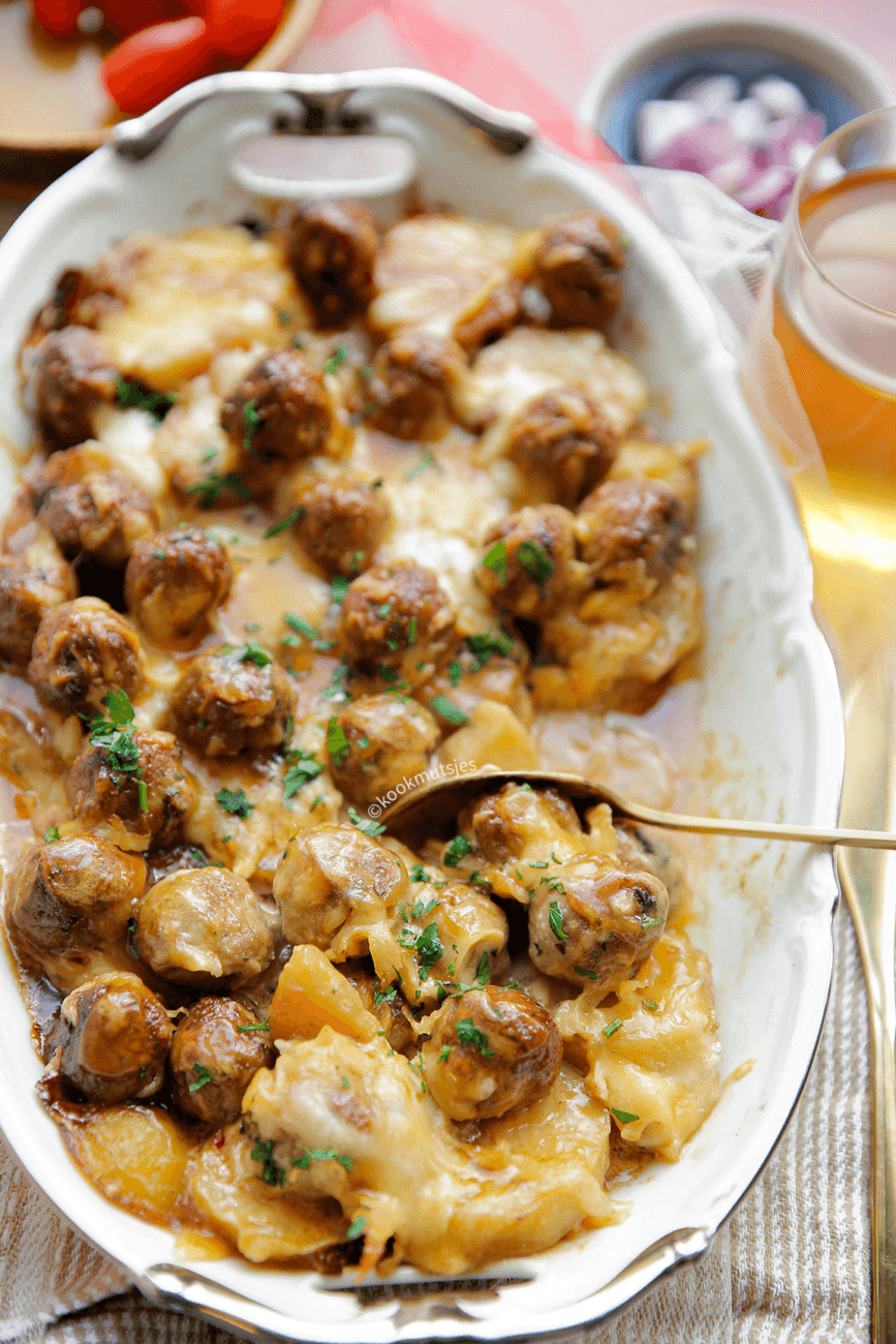Wij zijn dol op ovenschotels! Ze zijn makkelijk te maken en superlekker! Thuis vonden ze deze ovenschotel van aardappelschijfjes met gehaktballen heerlijk. Ideaal dus om het hele gezin te voeden!