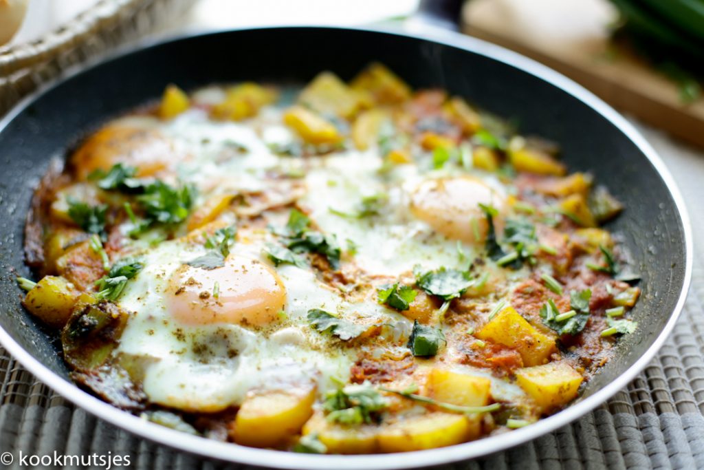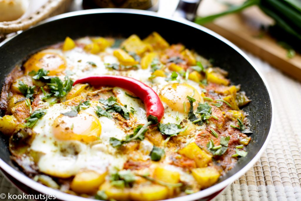 Aardappels vind ik altijd onmisbaar in een gerecht vanwege zijn populaire smaak. Dit is niet alles want heb de aardappels verrijkt met een rijpe tomatenpuree, diverse kruiden en afgemaakt met eieren. Daardoor zijn de gebakken aardappelen vol van smaak en worden ze precies goed gaar. Welke aardappels ik altijd gebruik zijn vastkokende aardappelen. Deze aardappels behouden hun mooie vorm na het koken of bakken en zijn altijd heerlijk zacht van binnen. Daarmee zijn de vastkokende aardappels perfect om te gebruiken voor allerlei gerechten, ovenschotels en salades.
