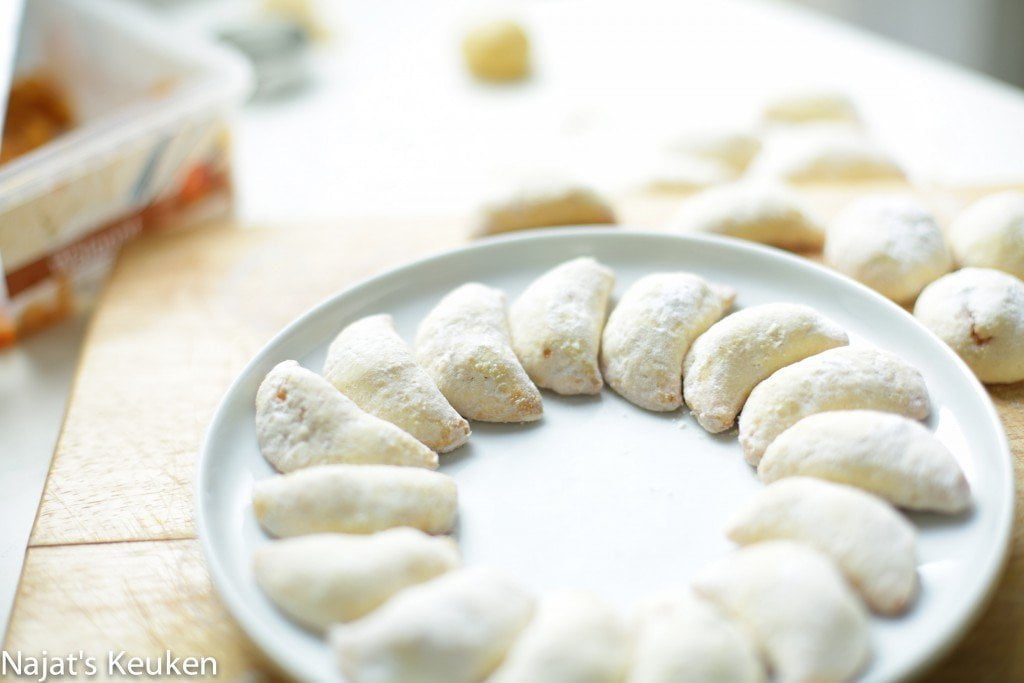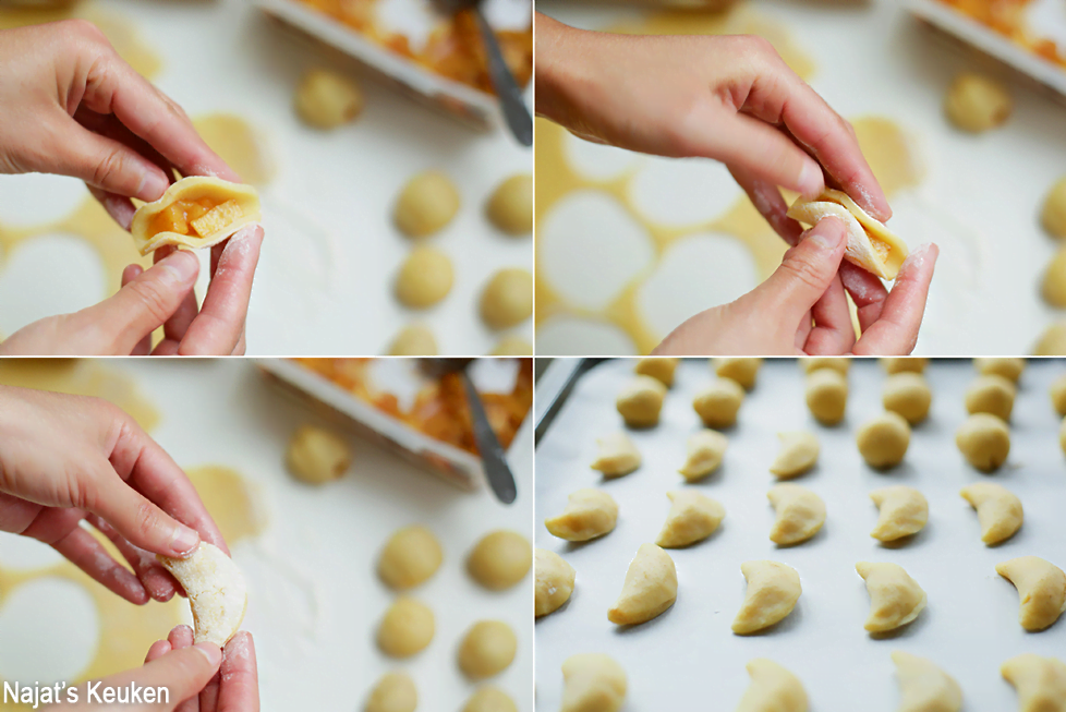 Lieve dames, vormpjes heb ik uit Marokko gehaald, maar je hebt niet perse een vorm nodig. Wat ik ook heel vaak doe is het deeg uitrollen, met een ronde cookie cutter haal ik er rondje uit en leg het appelmengsel in het midden. Vouw alles naar elkaar toe en maak het rond 😉