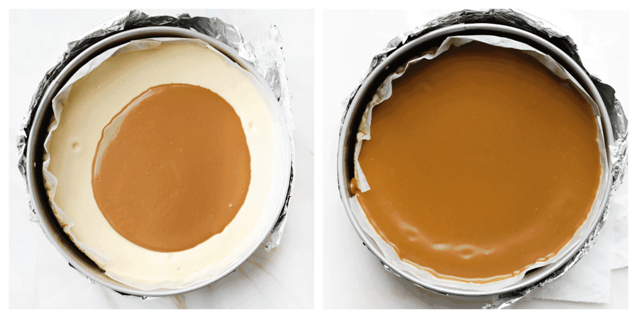 Place the Biscoff cheesecake in a preheated oven at 125 °C (250 °F).. Bake for 60 minutes or until the sides are firm and the center is still jiggly. Turn off the oven and leave the cheesecake in it for 1 hour. This prevents the cheesecake from sinking/cracking. Remove the cheesecake from the oven and place it, covered, in the refrigerator. Preferably overnight. |