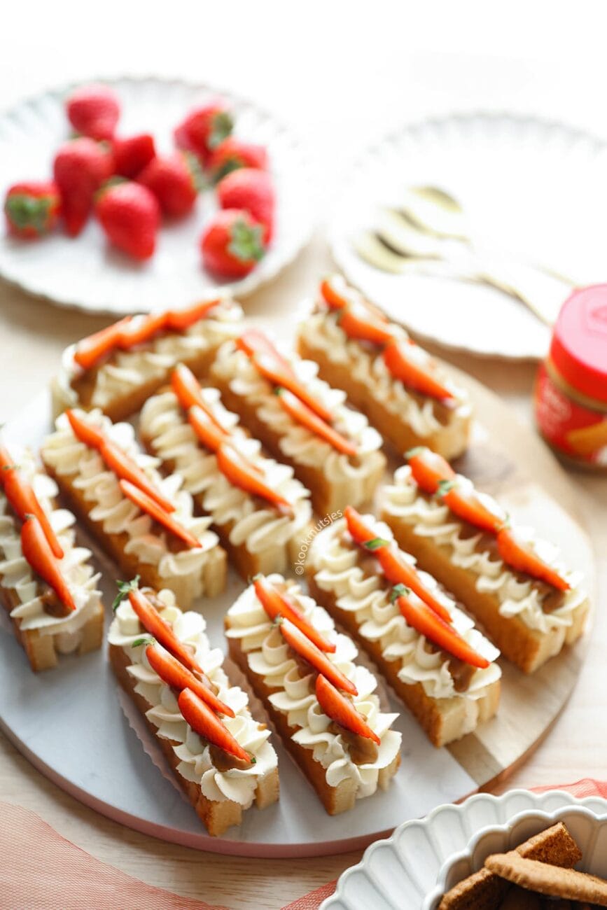Probeer dit weekend deze heerlijke sponscakejes, met een vulling van biscoff-pasta en luchtige room! Perfect voor bij koffie of thee, want ze zijn snel te bereiden en geschikt voor elk moment.