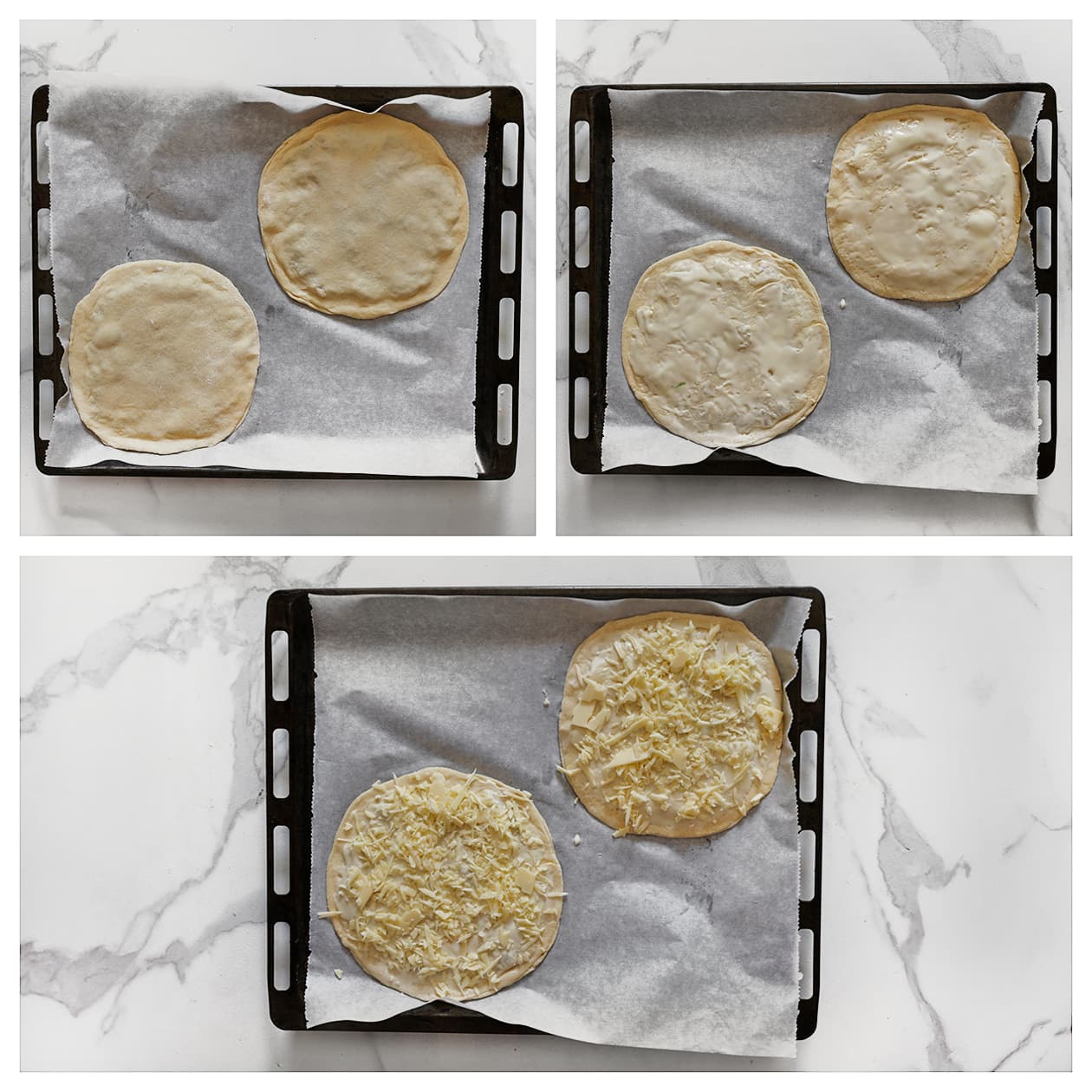 Add the sunflower oil and briefly mix. Then add the flour, fine semolina, and salt. Knead for 10–12 minutes until smooth. Cover and let the dough rise for 1 hour, or until it has doubled in size. |