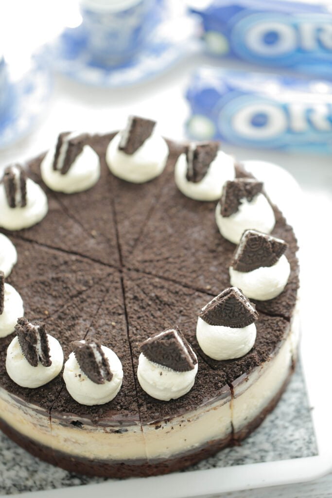Als je gewoon niet kunt kiezen tussen brownie, oreo, chocolade en cheesecake, neemt dit lekkers de beslissing voor jou! Je neemt ze allemaal! Deze cheesecake is zo smaakvol en mega lekker! Met een eenvoudige topping en een zacht laagje ganache is dit de ideale traktatie!