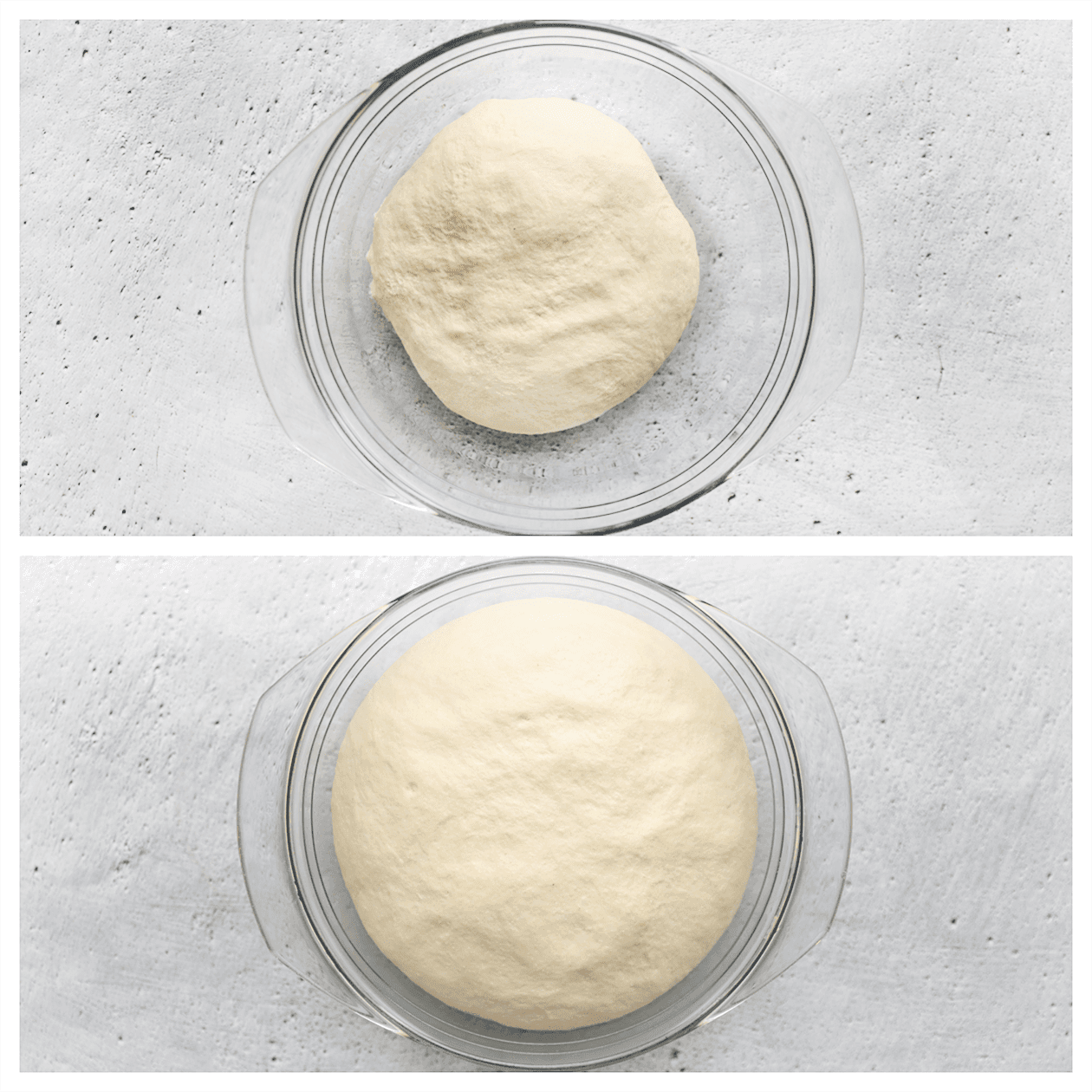 Dek het deeg af en laat het 1 uur rijzen op een warme plek in huis, of tot het in omvang is verdubbeld.