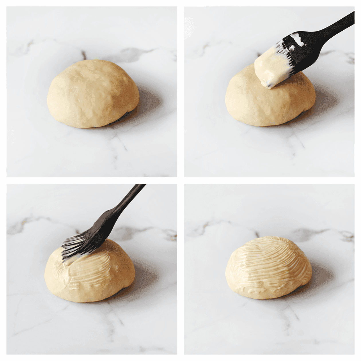 Bestrijk het deeg met mayonaise. Herhaal deze werkwijze.