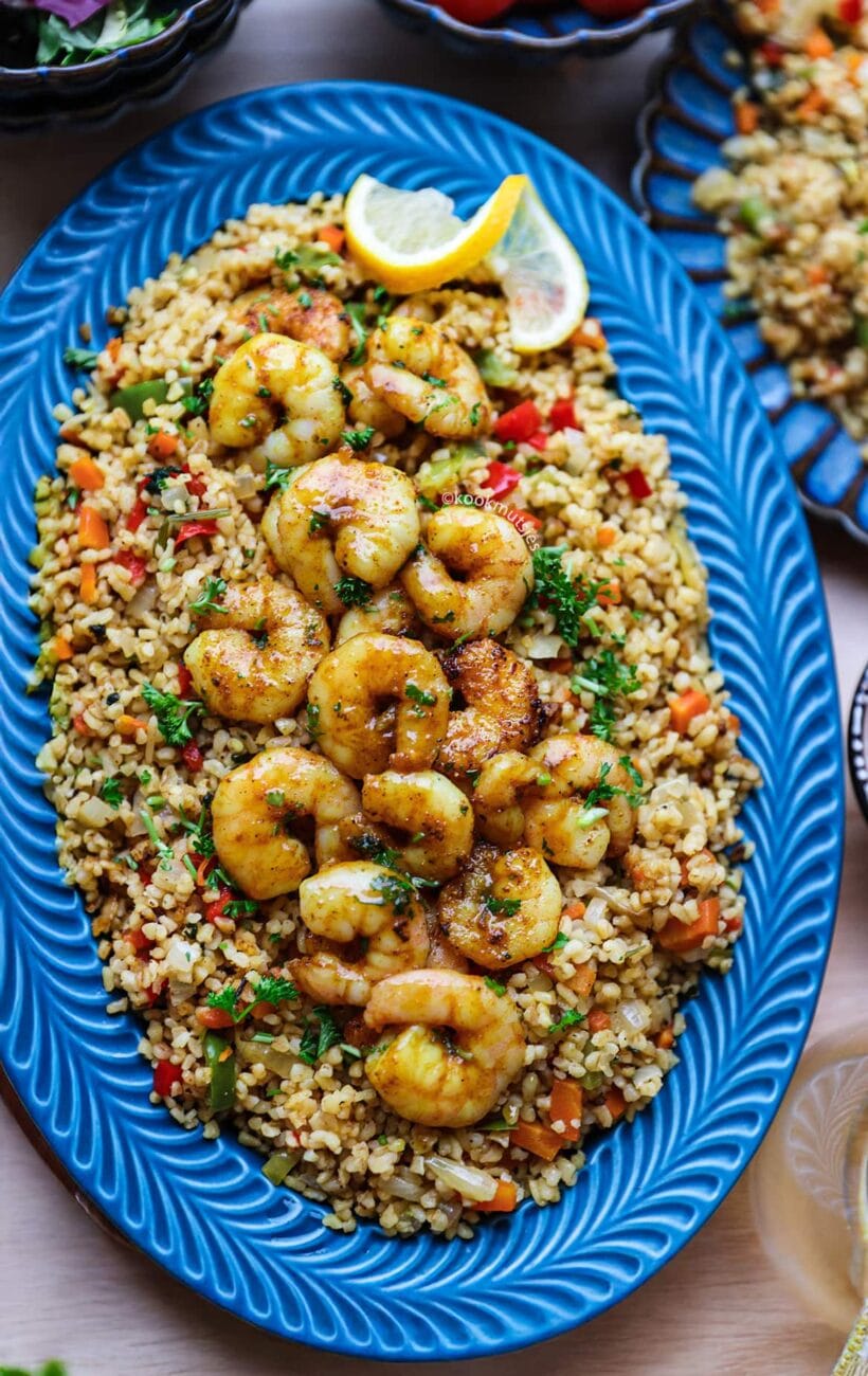 Als je op zoek bent naar een gerecht dat zowel kleurrijk als smaakvol is, zit je met dit recept helemaal goed! Malse garnalen met warme kruiden, gecombineerd met zachte bulgur en lekker veel groenten. Het is makkelijk te maken, gezond en perfect voor een doordeweekse avondmaaltijd!