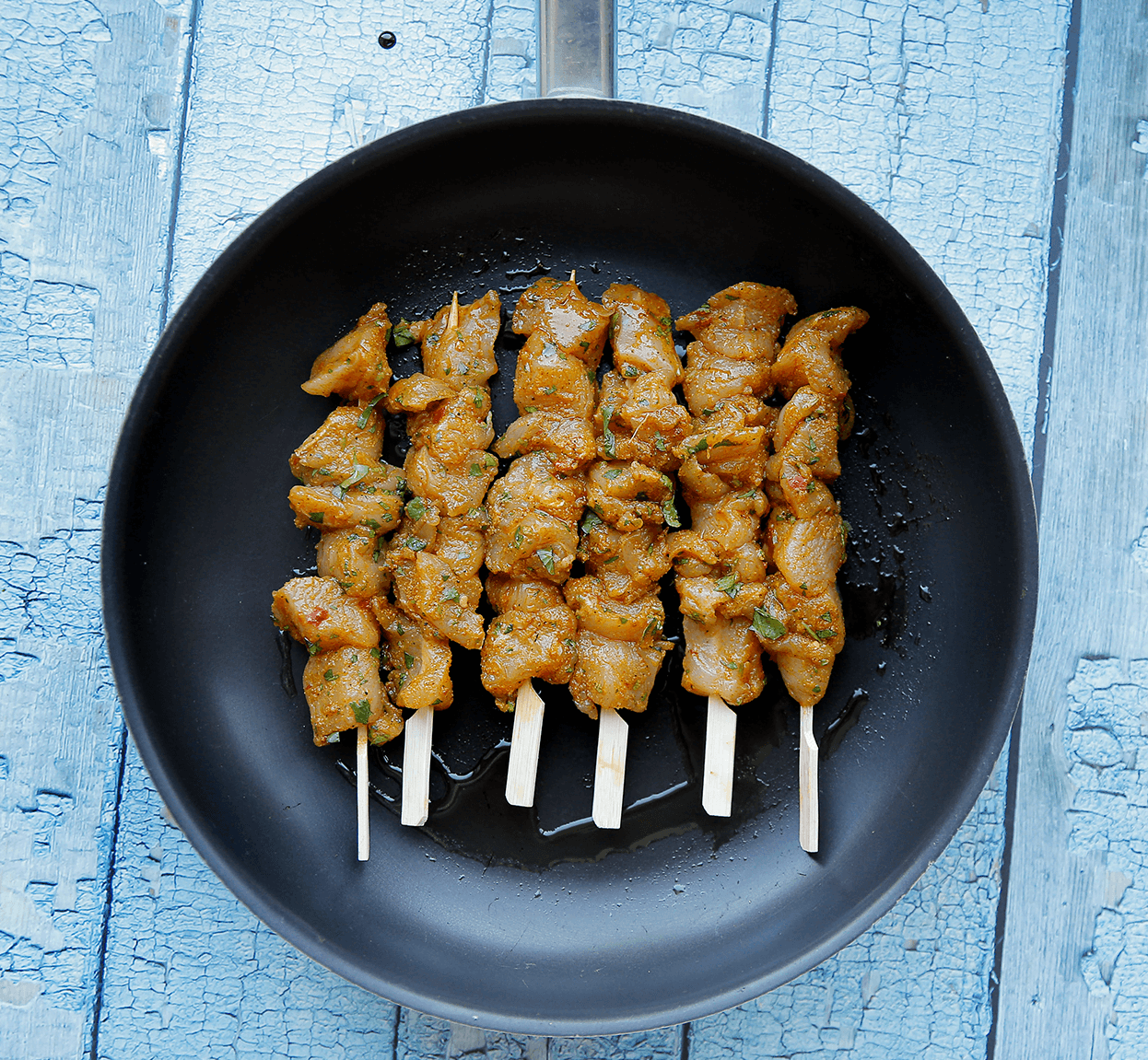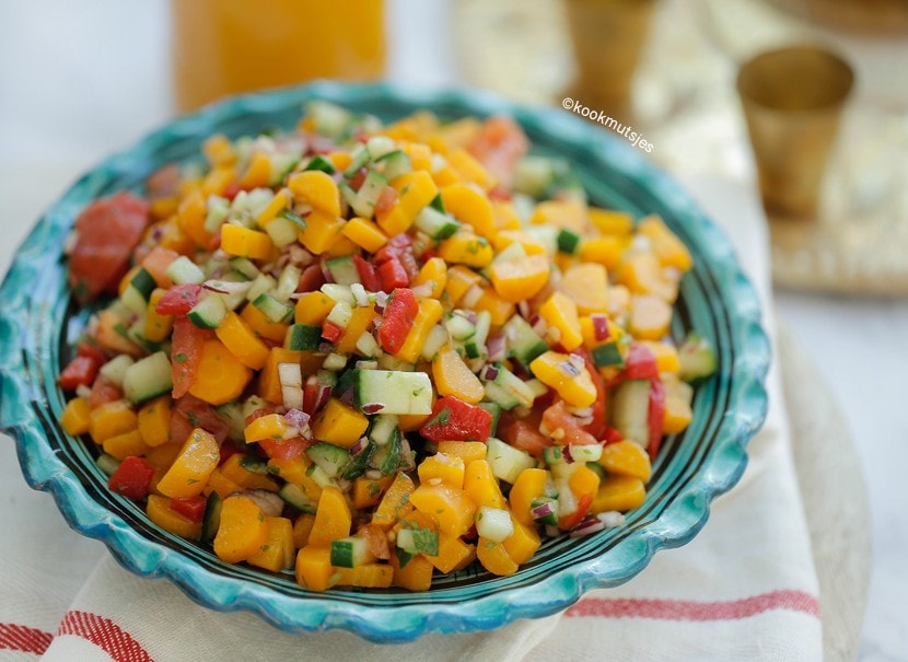 Dit vult zo lekker! Smaakvolle bulgur met frisse groenten, gegrilde aubergine, gekarameliseerde ui en gemarineerde kipspiesjes! Serveer dit lekkers en het zorgt voor een indrukwekkend feestje op tafel!