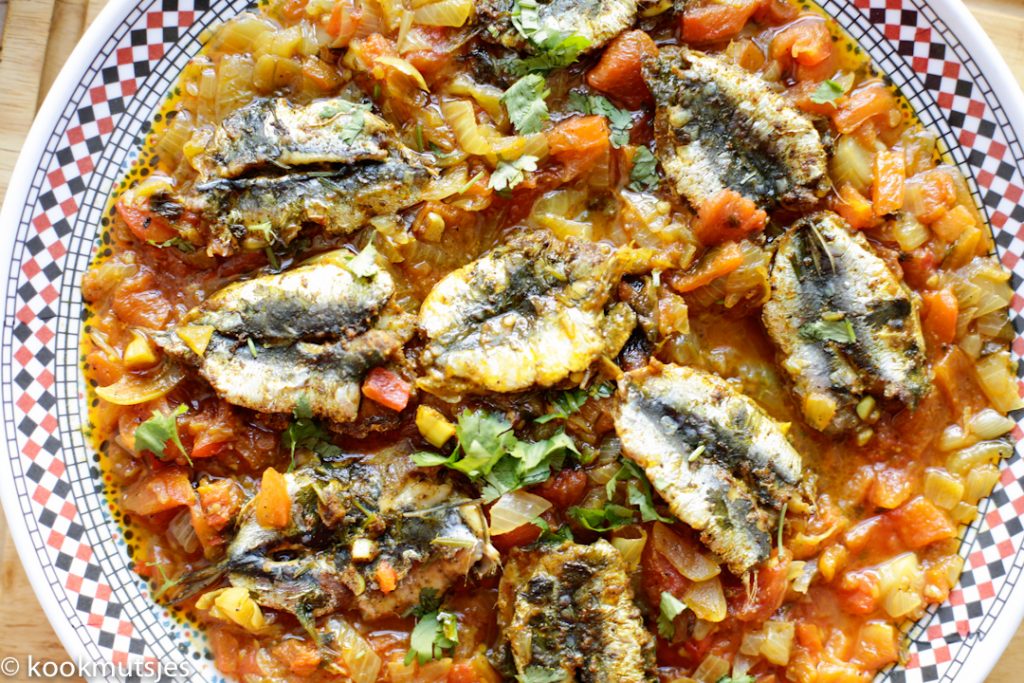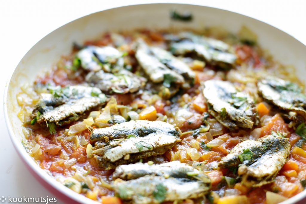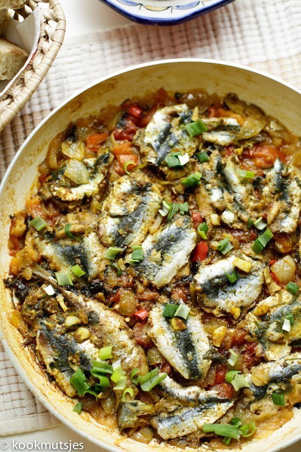 Ik kook graag iets uit de Marokkaanse keuken en sardientjes doen het altijd goed. Of je het nou barbecued, grilled of kookt, het is allemaal even lekker! In de Marokkaanse keuken wordt vis vaak geserveerd met de smaakmaker charmilla. Charmilla is een heerlijke tomatensaus wat wordt gemaakt van groentes en wordt gegeten met Marokkaans brood. Ik hou van de manier waarop alles samen ‘smelt’ waardoor je alle smaken van het gerecht proeft. Maar echt, wanneer het allemaal langzaam kookt en de saus suddert is er bijna geen houden aan voor mij. Real comfort food!