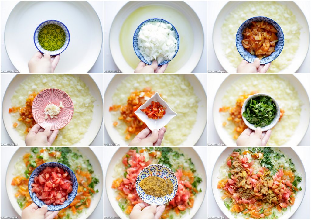 Vaak wordt het gemaakt van ui, knoflook, tomaat, koriander met de gebruikelijke specerijen. Wat ik echt aanraad, is om hier gegrilde paprika aan toe te voegen. Dit verrijkt de smaak enorm en geeft het gerecht een speciale toevoeging. Echt zo’n verademing!