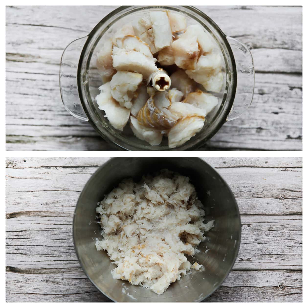 Gebruik kabeljauw en zeewolf die vers zijn. Dit draagt bij aan de smaak en textuur van het gerecht.