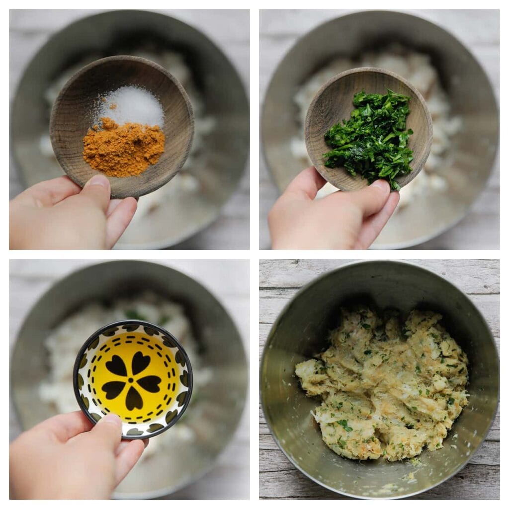 Proef het mengsel voordat je de kabeljauwbollen toevoegt en pas de kruiden aan naar jouw smaak. Sommige mensen houden van meer pit, dus voeg meer cayennepeper toe als je van pittig houdt.