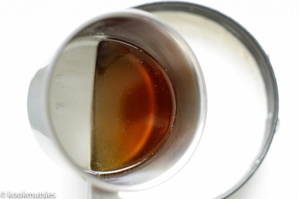 – Is je honing niet vloeibaar? Warm het dan op. Laat het even afkoelen voordat je de honing over de chebakia cheesecake giet.