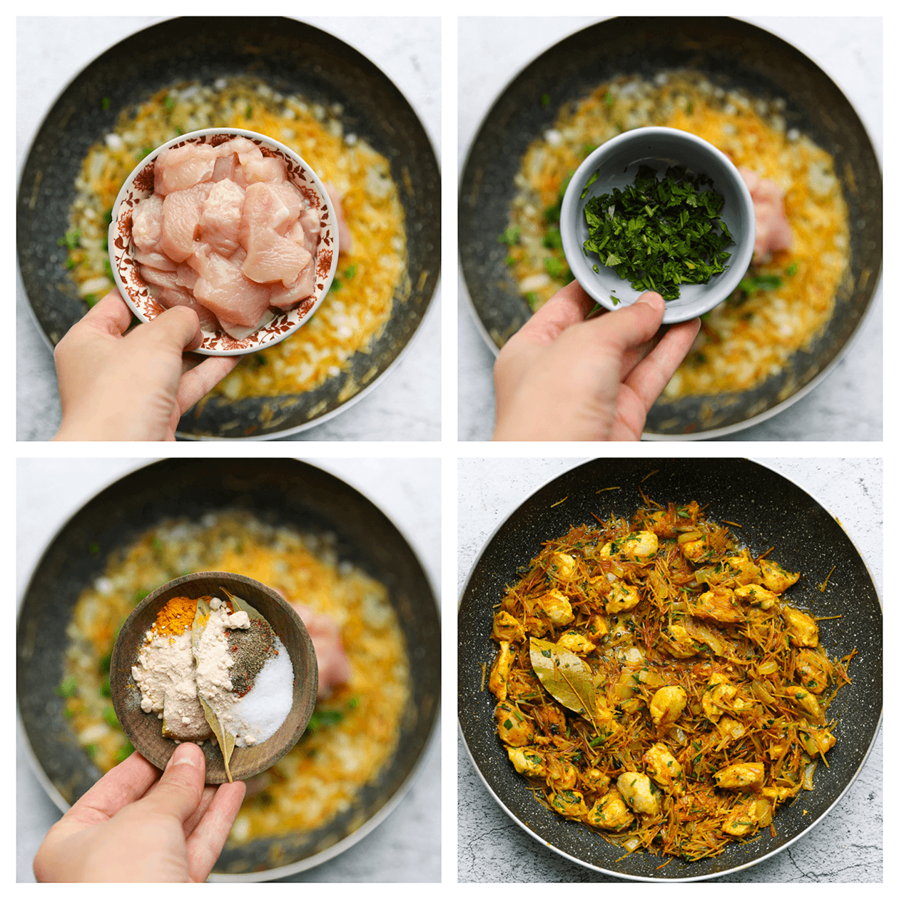 Enjoy a delicious weekday meal with this easy and simple chicken with rice and vermicelli. A perfect choice for a quick and tasty evening meal!