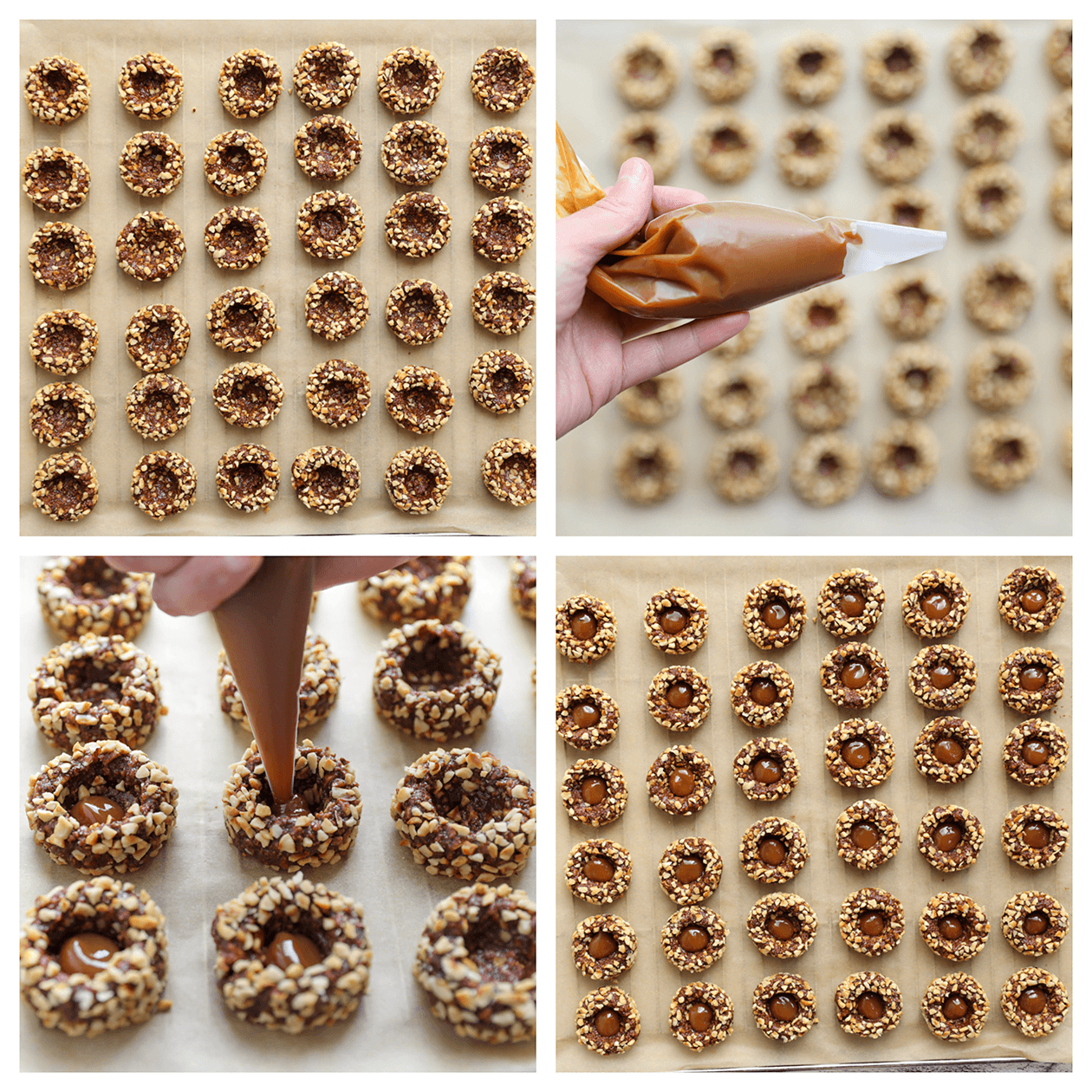 Deze heerlijke no-bake chocolade-karamelkoekjes zijn niet alleen mooi om naar te kijken, maar ook verrukkelijk om te eten! Elk koekje is gevuld met zachte karamel die perfect samengaat met de chocolade bovenop. En om het helemaal af te maken, zijn ze bedekt met gehakte hazelnoten voor een heerlijke crunch. Smullen maar!