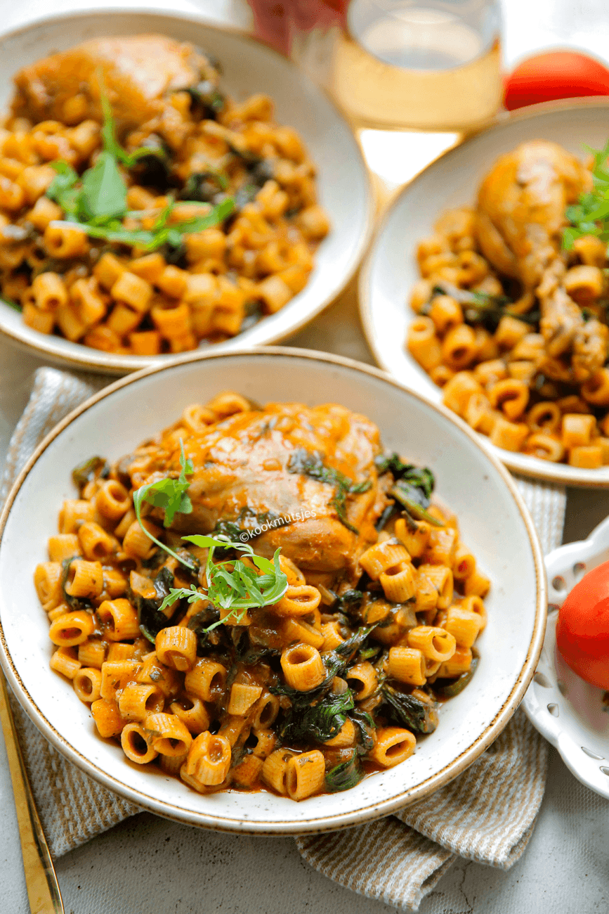Probeer dit heerlijke recept van pasta met kip in tomatensaus en spinazie eens uit! Het is makkelijk te maken en absoluut lekker om te eten! Deze pasta zit boordevol smaak en is ideaal voor een doordeweekse maaltijd!