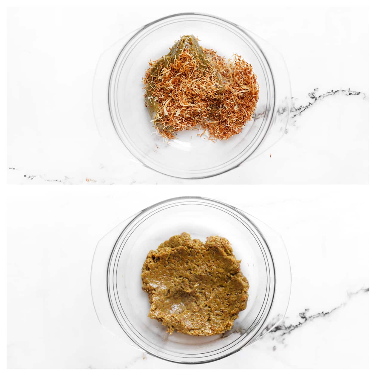 Maak je handen licht vochtig om te voorkomen dat het pistachemengsel aan je handen blijft plakken. Vorm het mengsel tot stevige balletjes.