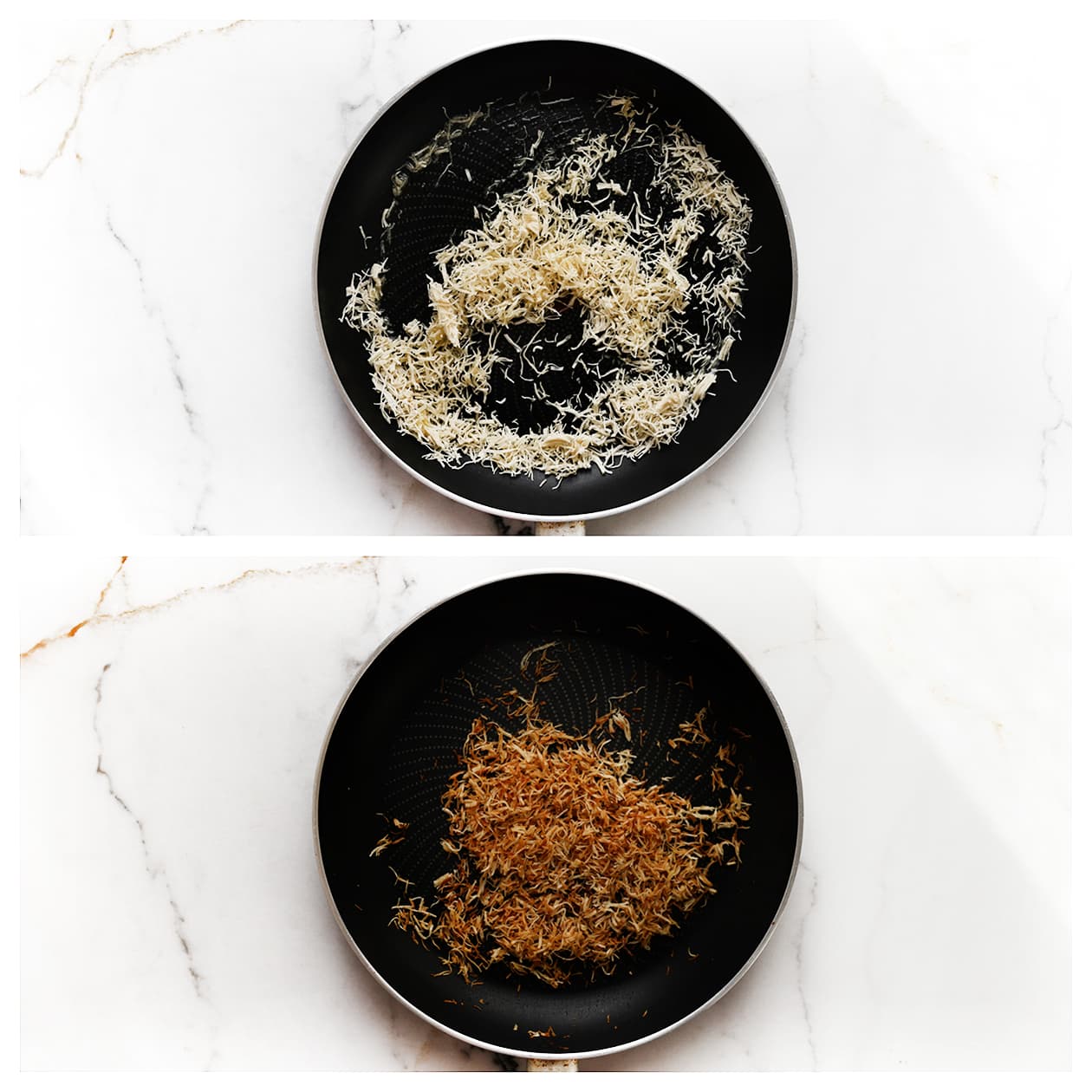Bak de kadayif langzaam op niet al te hoog vuur om te voorkomen dat het verbrandt.