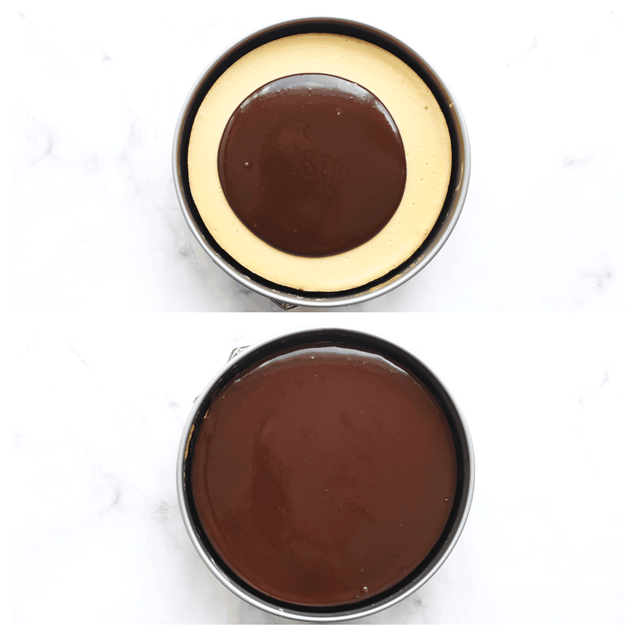 Als je een chocoladeliefhebber bent en op zoek bent naar een ultieme verwennerij voor het weekend, waarom zou je dan niet een dubbele cheesecake bakken? Deze decadente traktatie heeft twee lagen, een romige witte chocoladelaag en een rijke donkere chocoladelaag – die samen een smaaksensatie vormen! Ga lekker aan de slag en geniet ervan!