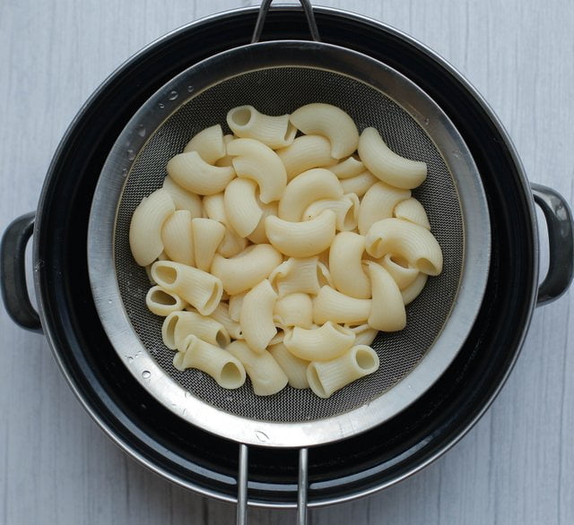 Snijd de rode ui, snoeptomaat, augurk, groene olijven en surimi sticks klein. Laat de blikken maïs en tonijn uitlekken. |