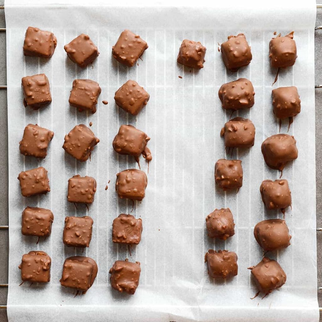 Zorg ervoor dat je de bonbons voldoende tijd geeft om stevig te worden op bakpapier voordat je ze serveert of opbergt.