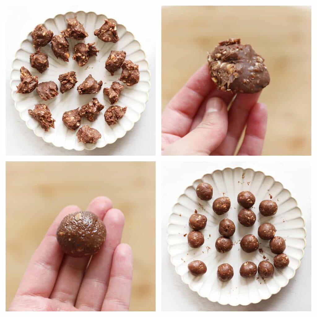 Laat de ganache voldoende afkoelen voordat je begint met het vormen van de chocoladebollen.