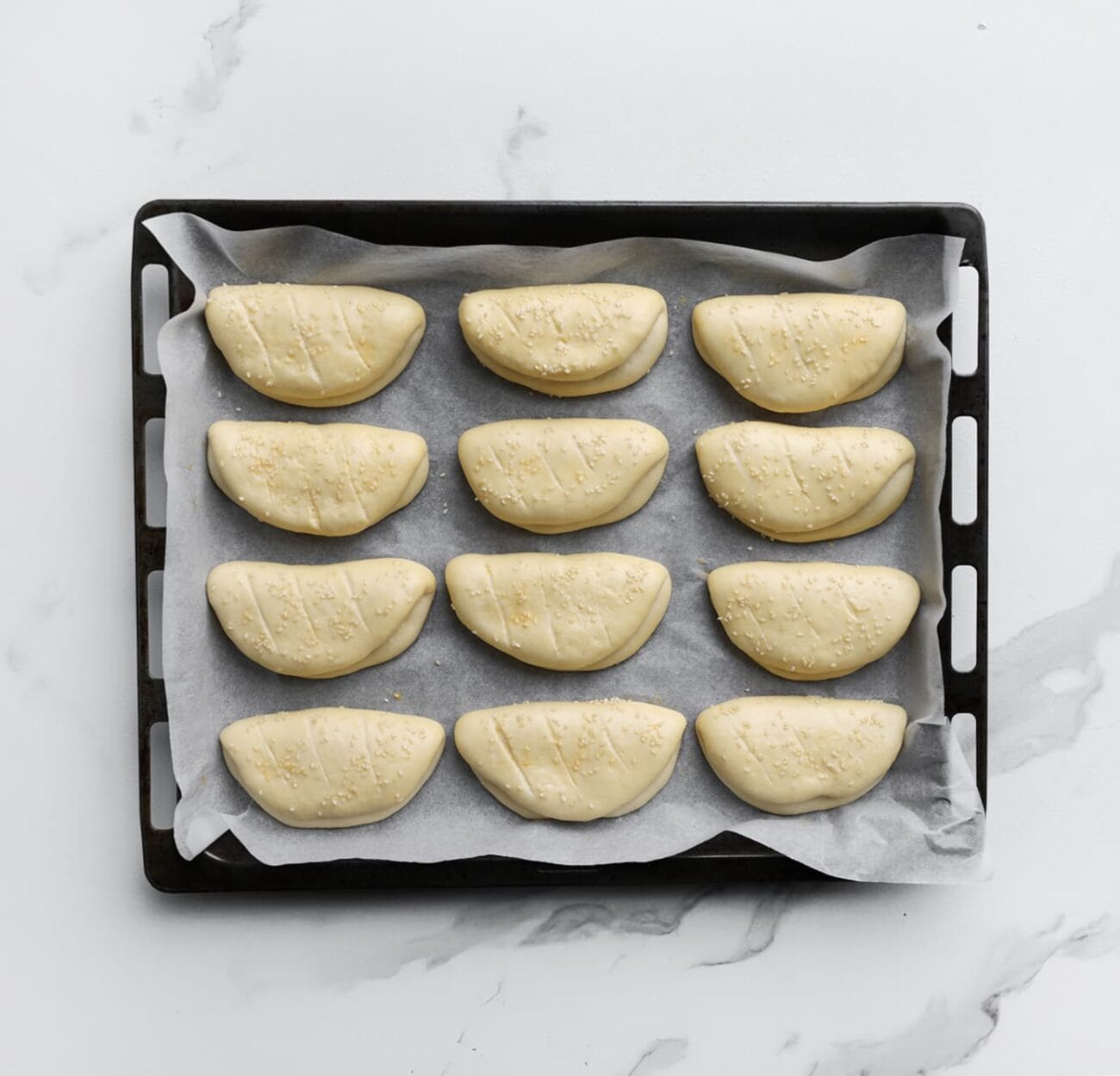 Elk type oven is anders. Controleer na 12 minuten de kleur van de broodjes en draai de bakplaat eventueel halverwege om voor een gelijkmatige kleur.