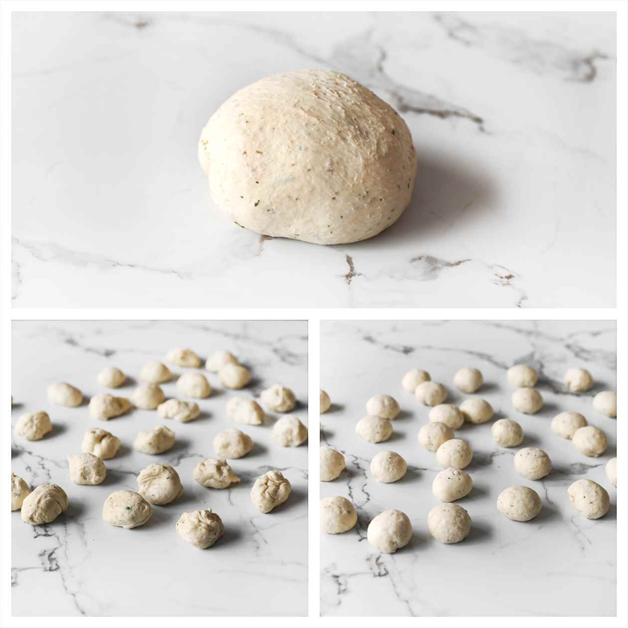 Divide the dough into 32 equal pieces (26/27 grams each) and shape them into balls.