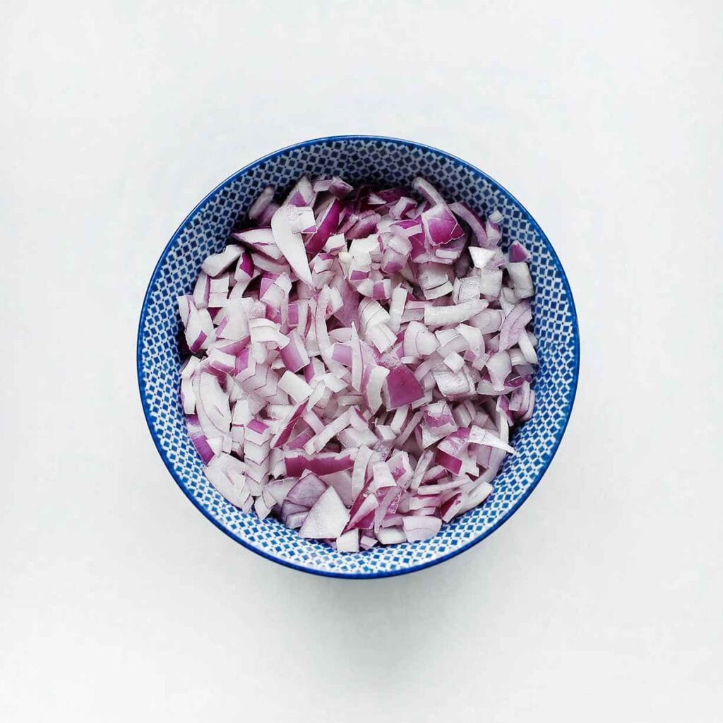 Peel and finely chop the red onion.