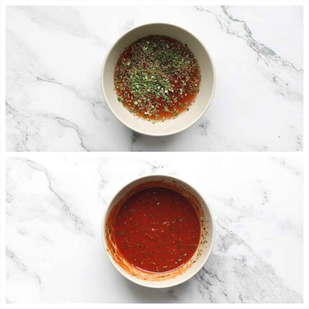 In a bowl, mix the tomato paste with the water and Italian seasoning.