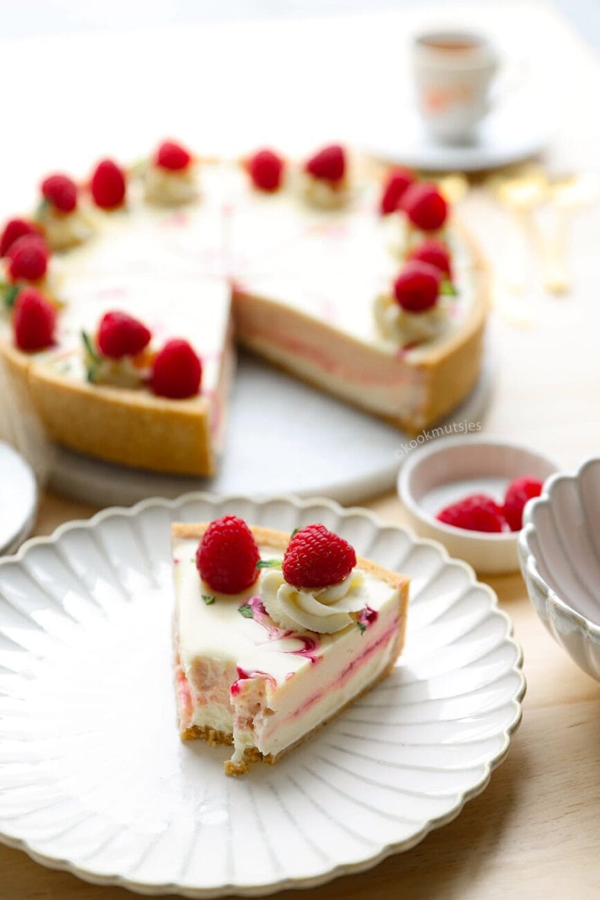 Frambozen Cheesecake met Witte Chocolade (No Bake)
