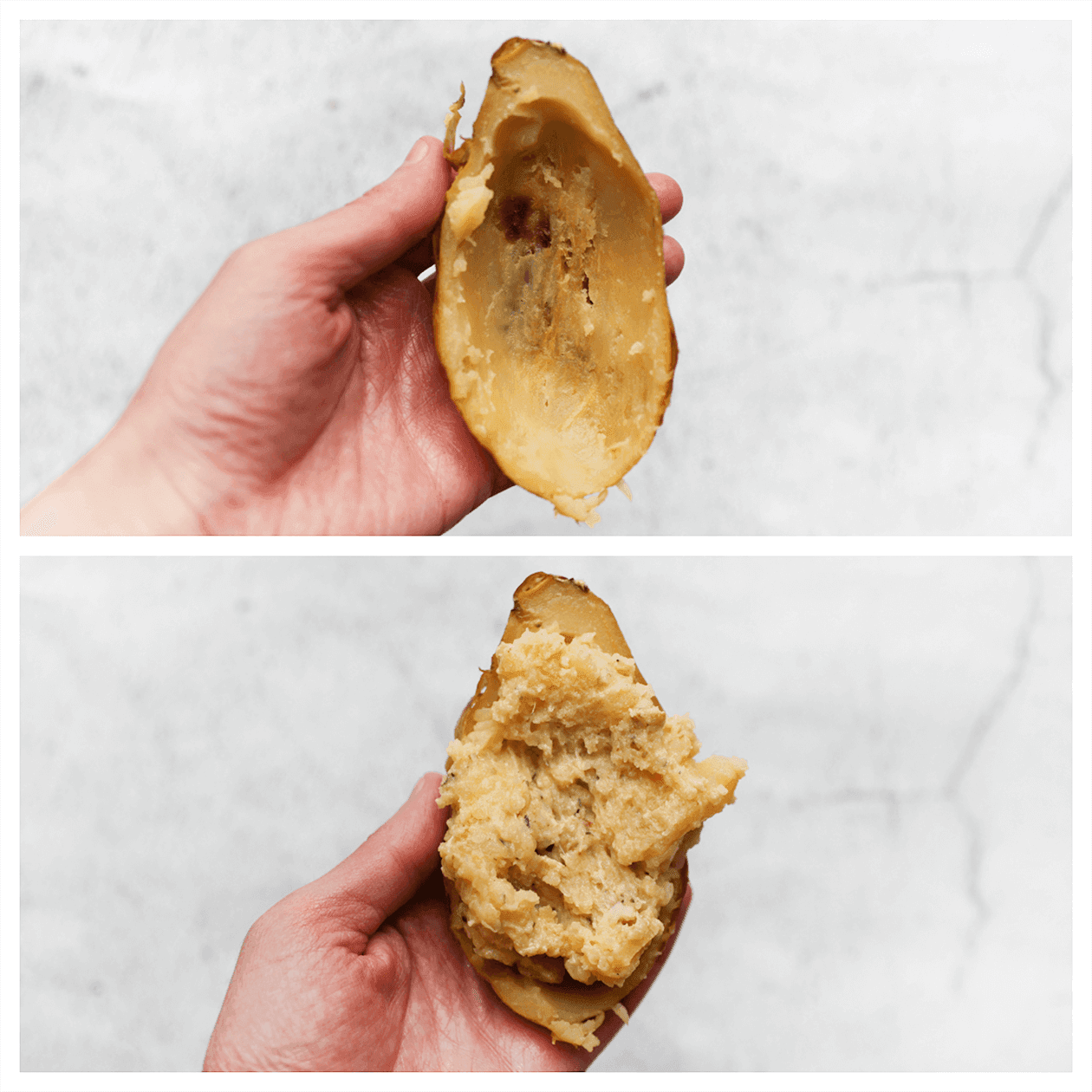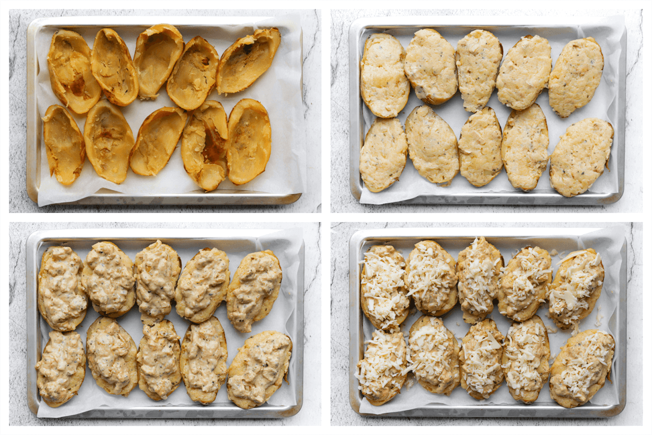 Houd rekening met de grootte van de aardappels en pas de vulling dienovereenkomstig aan. Zorg ervoor dat de vulling goed verdeeld is over alle aardappels.