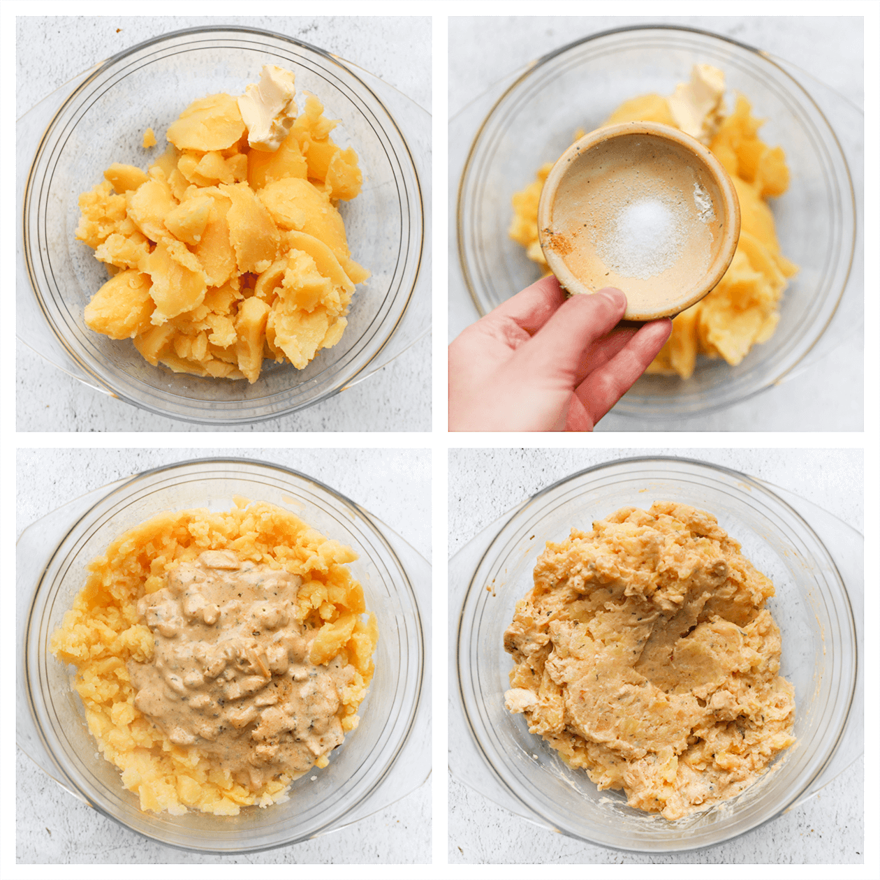 Proef de aardappelvulling en pas de hoeveelheid roomboter en zout aan naar jouw smaak. Dit stelt je in staat de vulling aan te passen aan je persoonlijke voorkeur.