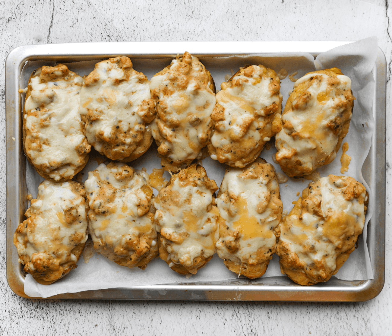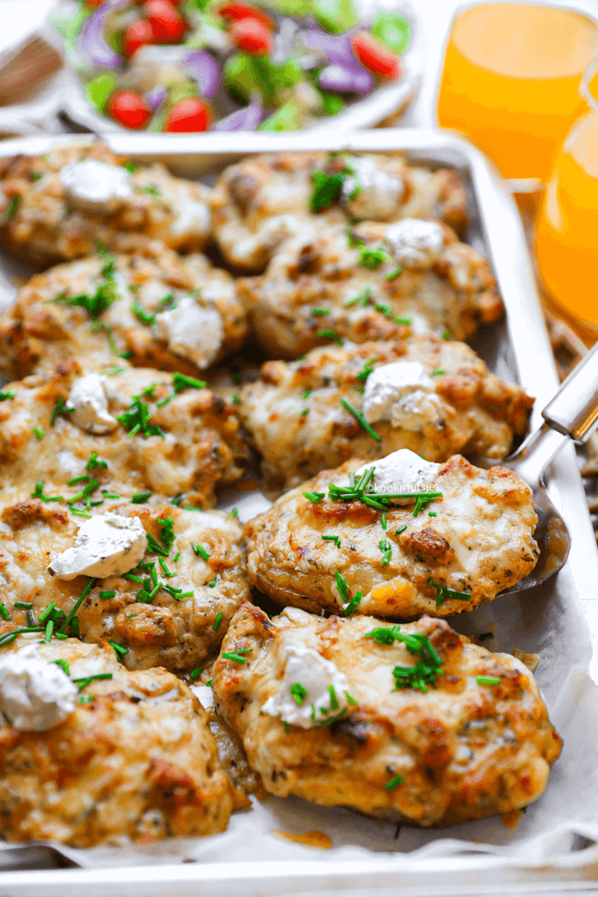 Probeer deze heerlijke gevulde aardappels met romige, goudbruin gebakken kip! Een smaakvolle doordeweekse maaltijd vol comfort!