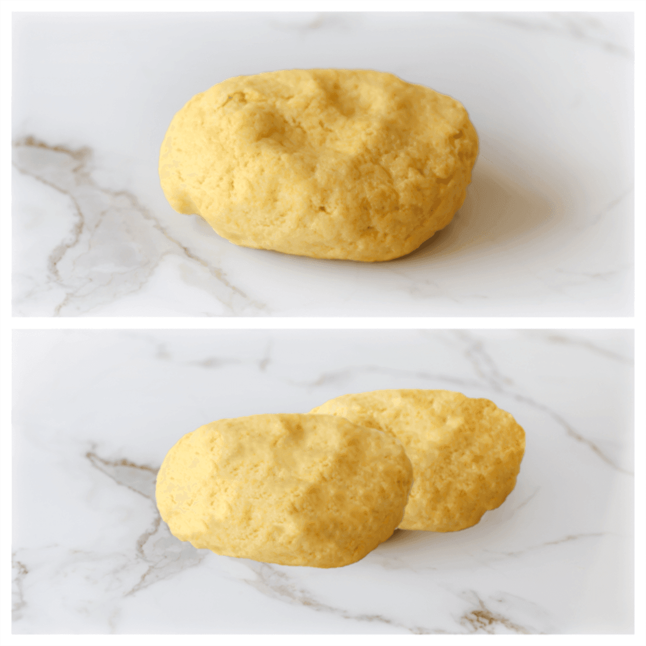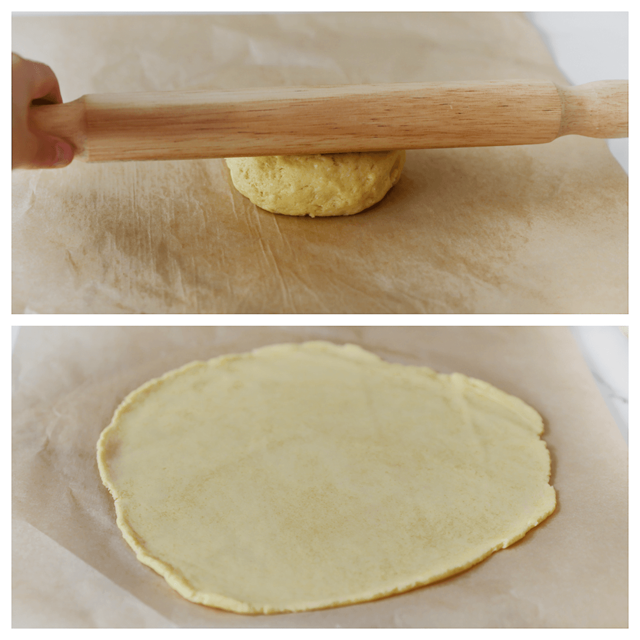 Neem het overige deeg en rol dit weer uit tot een ronde lap.