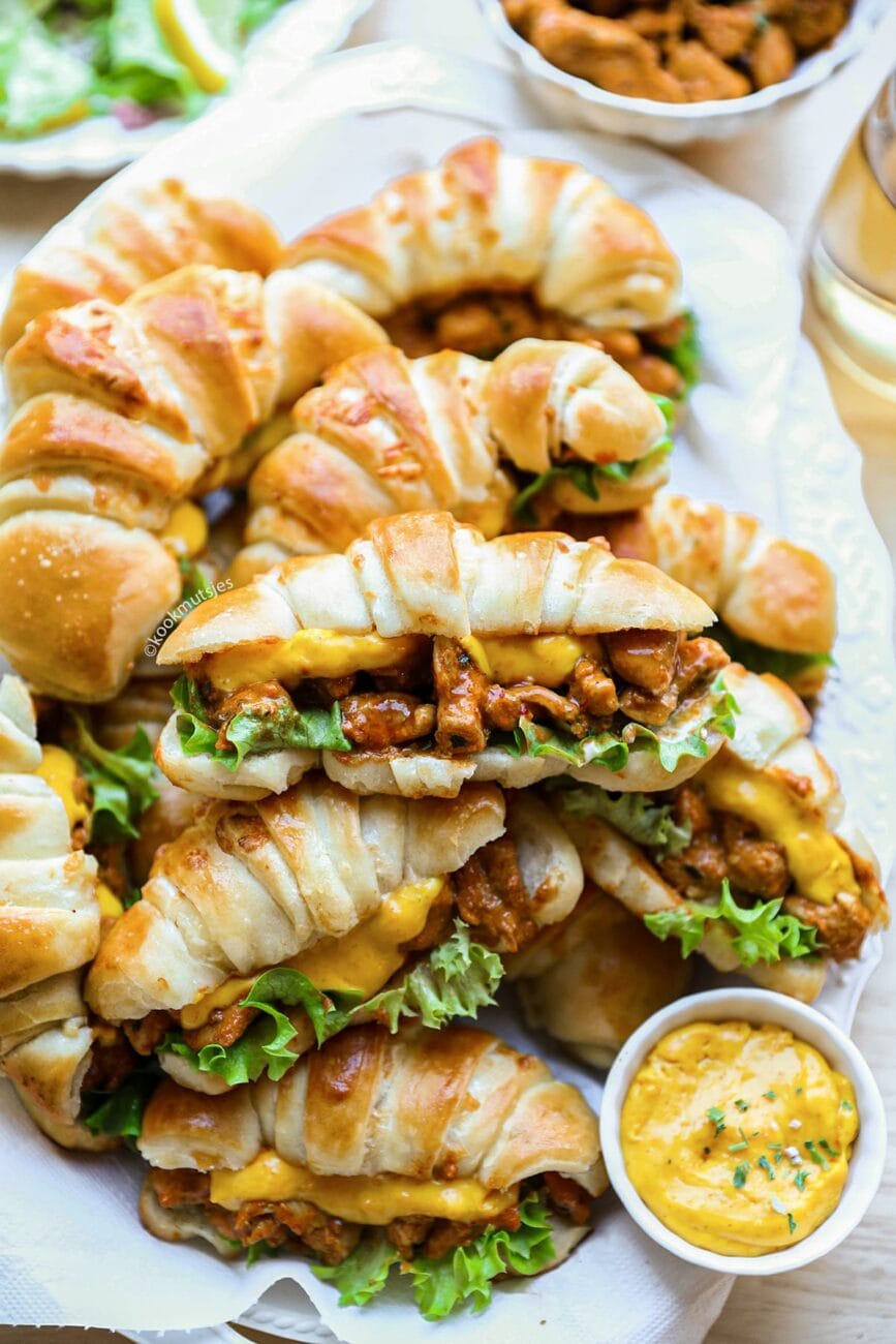 Maak deze zelfgemaakte croissantbroodjes gevuld met kaas en kip! Het deeg is heerlijk luchtig, de kaas smelt perfect, en de pittige kip geeft dat beetje extra. Perfect voor een gezellige lunch, een feestje, of gewoon omdat je er zin in hebt!