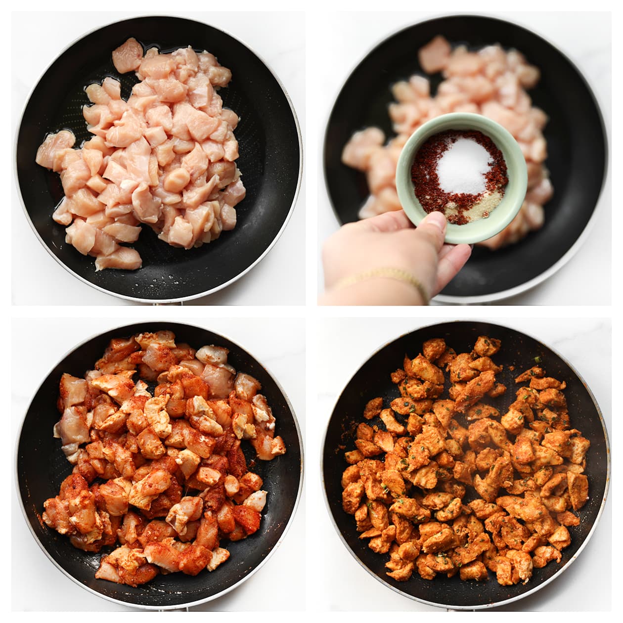 Als je voor kinderen kookt, kun je de cayennepeper in het kipmengsel verminderen of weglaten.
