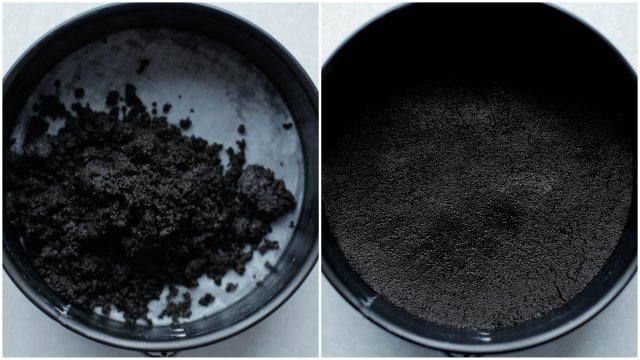 Voeg de roomkaas toe in een diepe kom. Mix de roomkaas voor een minuut. Voeg de suiker, vanillesuiker, zout en maïzena toe. Mix het voor een minuut samen. Leg de mixer weg en gebruik vanaf nu de spatel. Los de ei op met de spatel (doet dit niet met een mixer, want zo klop je het beslag op). Verdeel het cheesecake-beslag door twee: 300 gram en 400 gram. |