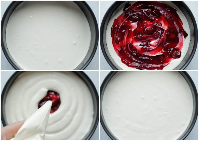 Leg de kersen cheesecake voor een paar uur afgedekt in de koelkast (het liefst een hele nacht). |