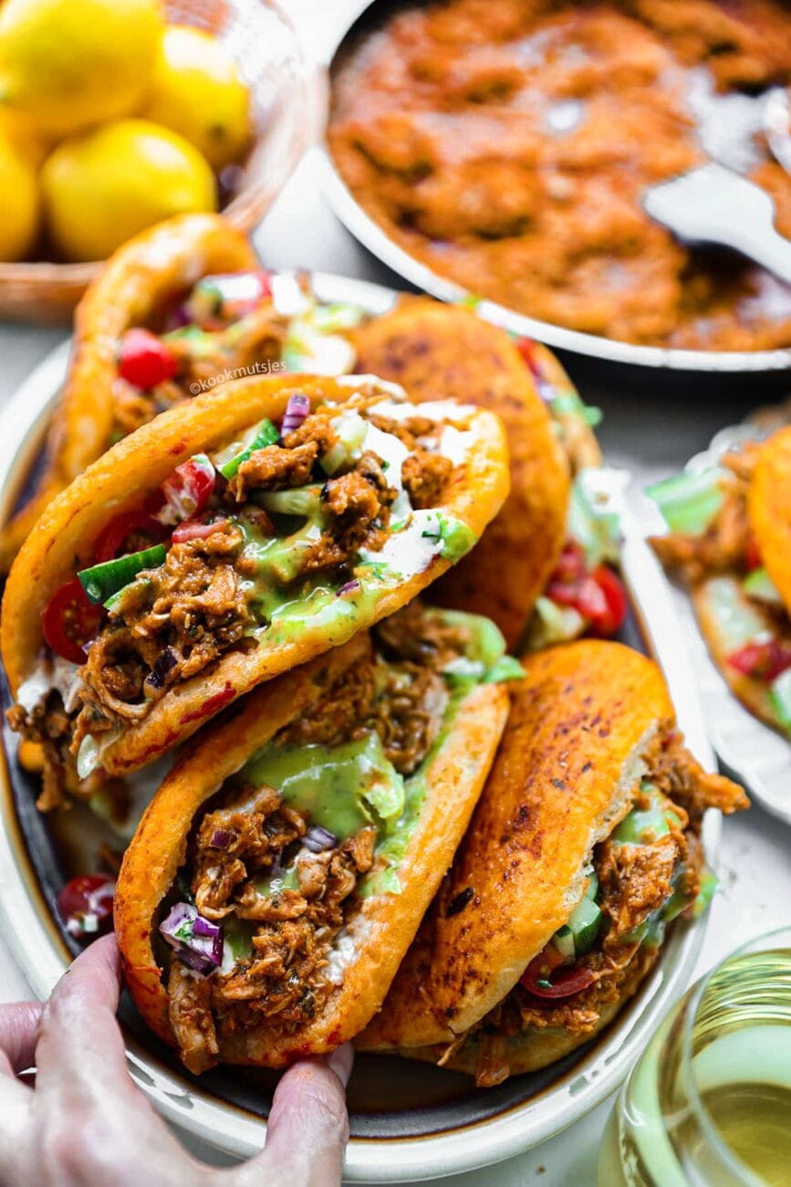 Zin in iets hartigs dat je helemaal zelf kunt maken? Deze kipbroodjes zijn het écht waard! Het deeg is lekker luchtig en wordt gevuld met sappige kippendijen die je lekker op smaak hebt gebracht met een zelfgemaakte kruidenmix. Daaroverheen een heerlijke tomatensaus vol verse groenten en kruiden die het afmaakt. Perfect voor een gezellig etentje, of gewoon omdat je iets lekkers wilt. Dit recept is een echte smaakbom waar iedereen blij van wordt!