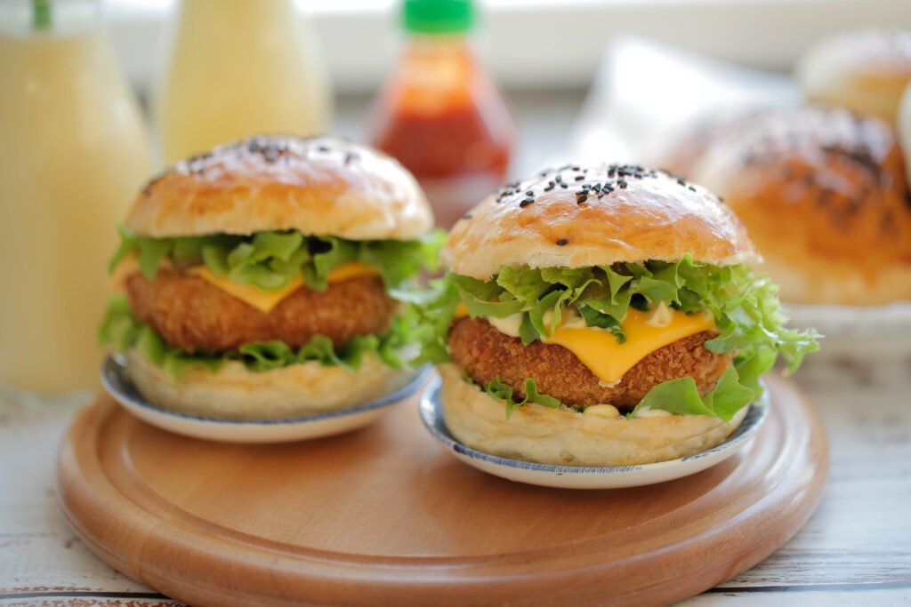 Bak de kipburgers in een pan met zonnebloemolie op 180℃ mooi goudbruin aan beide kanten.