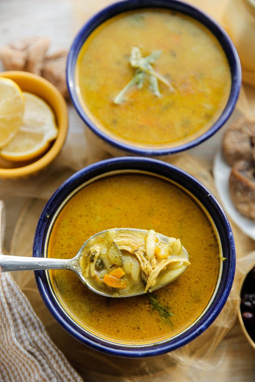 Deze kippensoep met orzo is alles wat je maar van een soepje wil! Licht, voedzaam, gezond en enorm lekker! Het houd je lekker warm en raad het je zeker aan om dit recept vandaag nog te maken. Zo kun je hier vanavond nog heerlijk van genieten! Yummm, laat de winter maar komen!