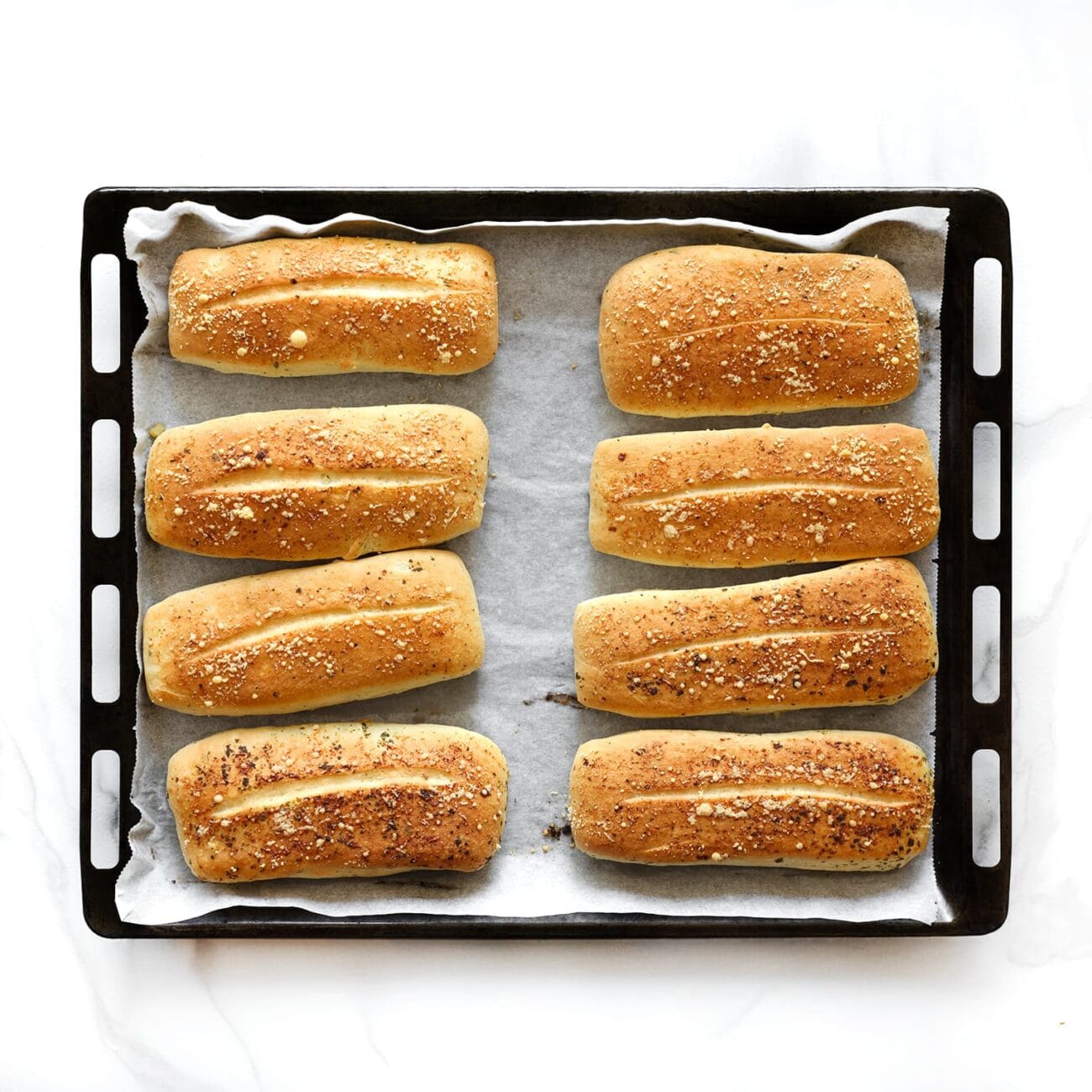 Wil je een extra rijke smaak? Bestrijk de broodjes direct na het bakken met een beetje gesmolten kruidenboter voor een heerlijke geur en smaak.
