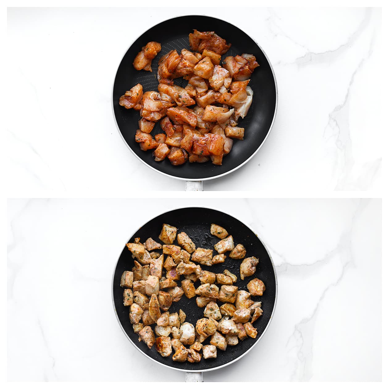 Verhit een koekenpan op middelhoog vuur. Voeg de kip toe en bak in 6-7 minuten gaar.