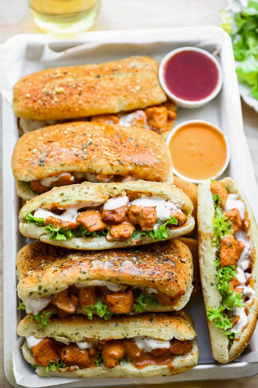 Deze homemade, luchtige broodjes met kip en een pittig-romige saus zijn een echte smaakexplosie! Zelf maken? Dit recept is makkelijk te volgen en zó ontzettend lekker!