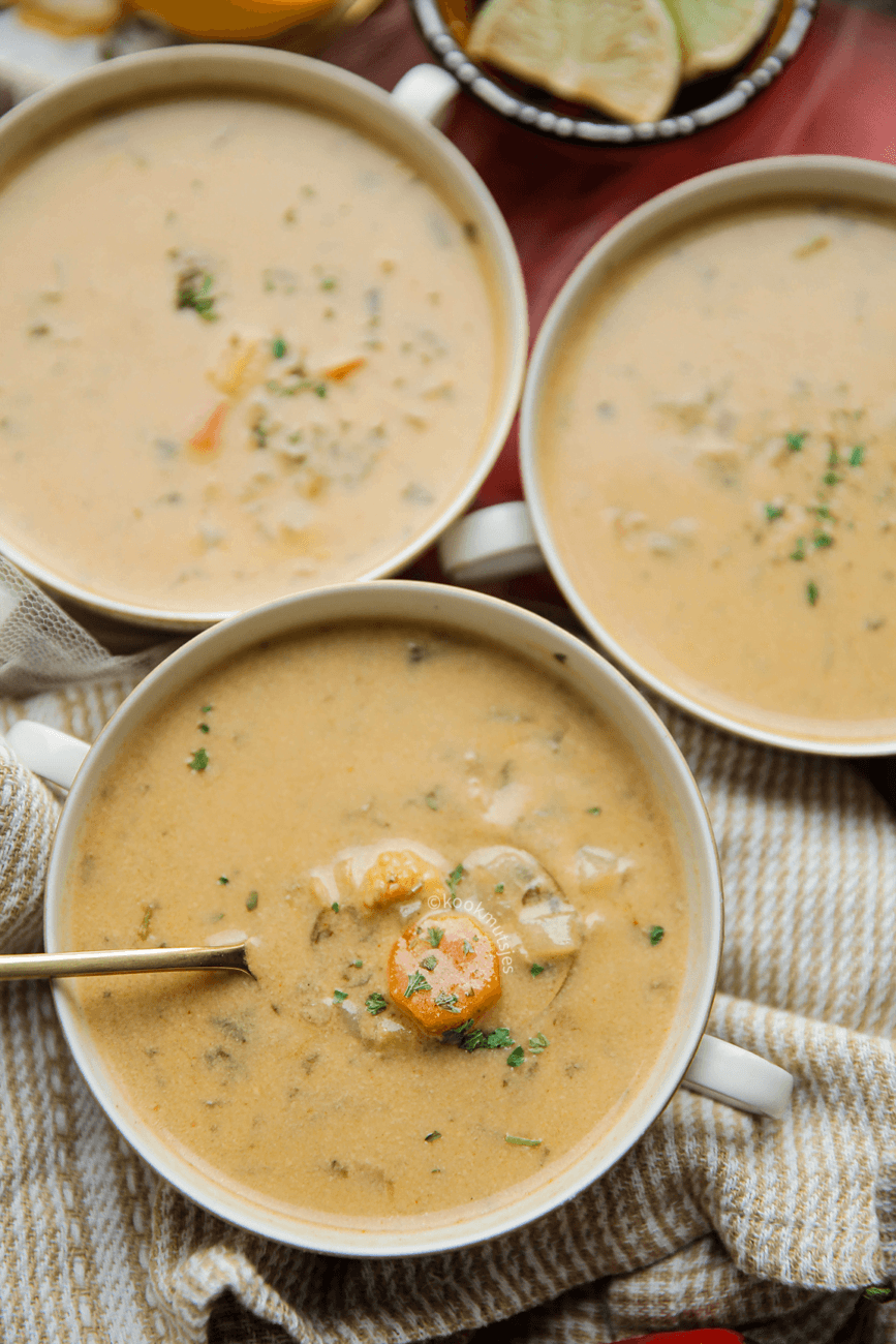 Dit is een heerlijk recept van kokossoep met kip en groenten! Het is een lekkere manier om je groenten binnen te krijgen en perfect voor de koude dagen! Maak deze eenpansrecept voor een doordeweeks diner, want het is supermakkelijk te maken!