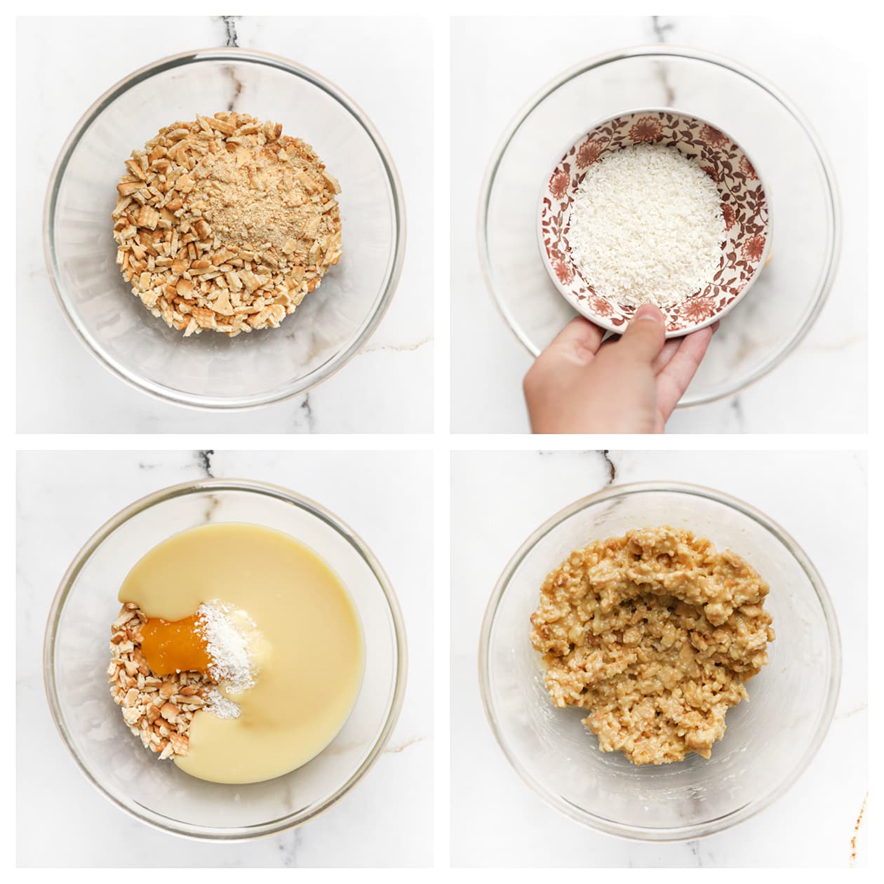 Let the ganache cool before mixing with the cookies. If it’s too warm, the cookies will go soggy and you won’t get a firm texture. Wait until it’s at room temperature but still spreadable.