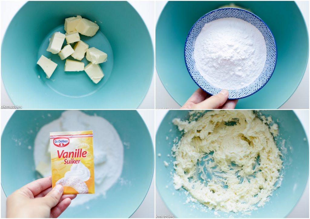 Hi Nassira, in het deeg ook bloem en daarna als je het deeg weer gaat uitrollen dan heb je ook bloem nodig. Nog een tip als je het deeg hebt gemaakt, doe het dan eerst in de koelkast zodat de boter hard word. Zo kan je het makkelijk uitrollen en krijgen je koekjes een mooiere vorm 🙂