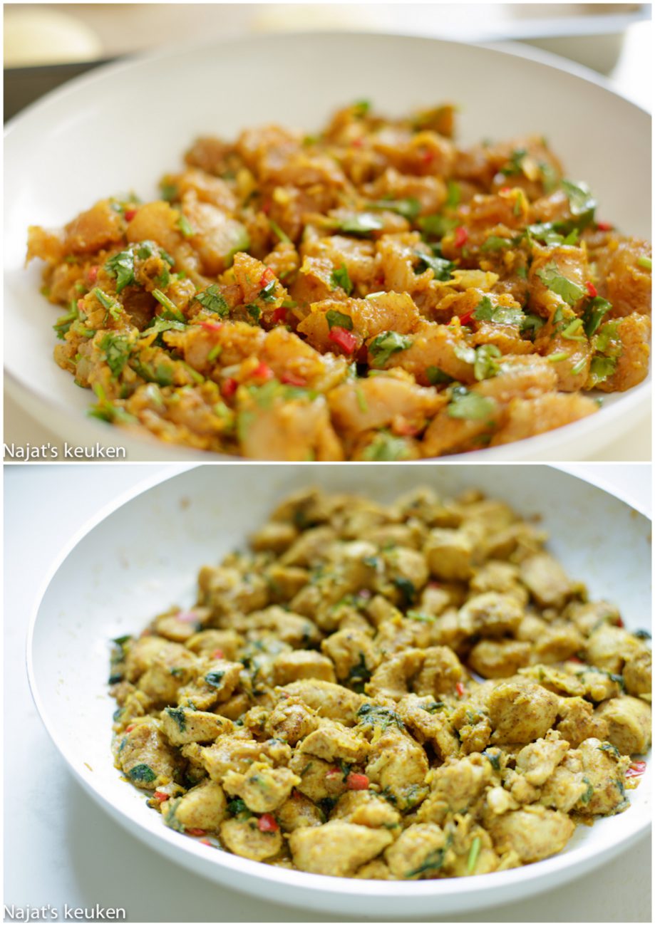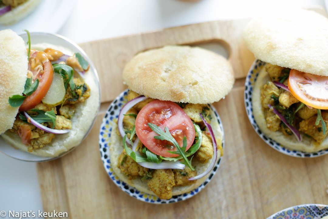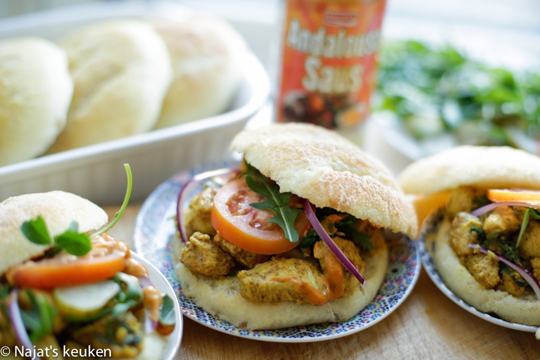 De liefde tot zijn land is ieder aangeboren, in mijn ogen geldt dat ook op culinair gebied. Ben altijd een grote, trouwe fan van de Marokkaanse keuken, vooral wanneer mijn lieve moeder het maakt. Zij tovert echt binnen no time een gerecht op tafel, wat ik nog steeds erg merkwaardig vind. Deze Marokkaanse kip is zo lekker gekruid dat je er zo intens van kunt genieten. En dan zonder enig besef… is die op! Oh ja, ik heb de griesmeelbroodjes gevuld met deze Marokkaans gekruide kip en het was heerlijk! Smakelijk eten allemaal.