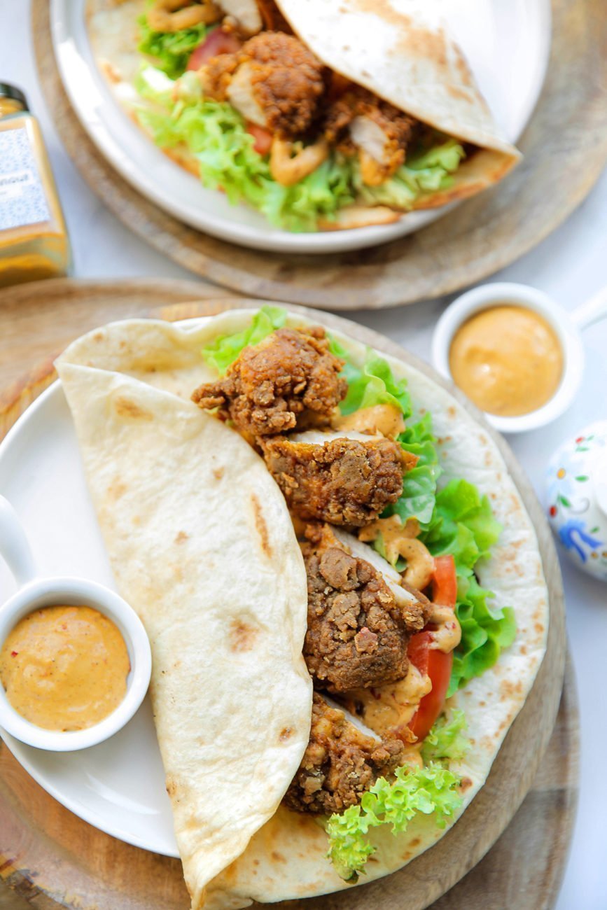 – Serveer deze krokante kip met huisgemaakte wraps.